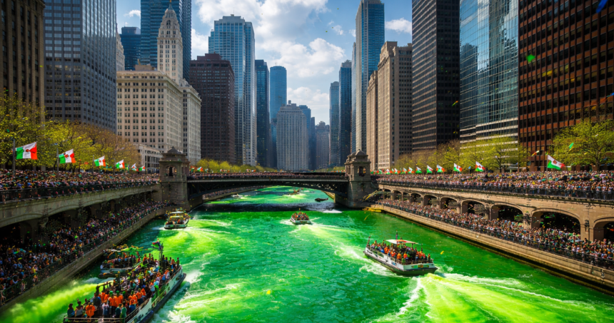 Chicago River Turns Bright Green For St. Patrick’s Day Celebrations