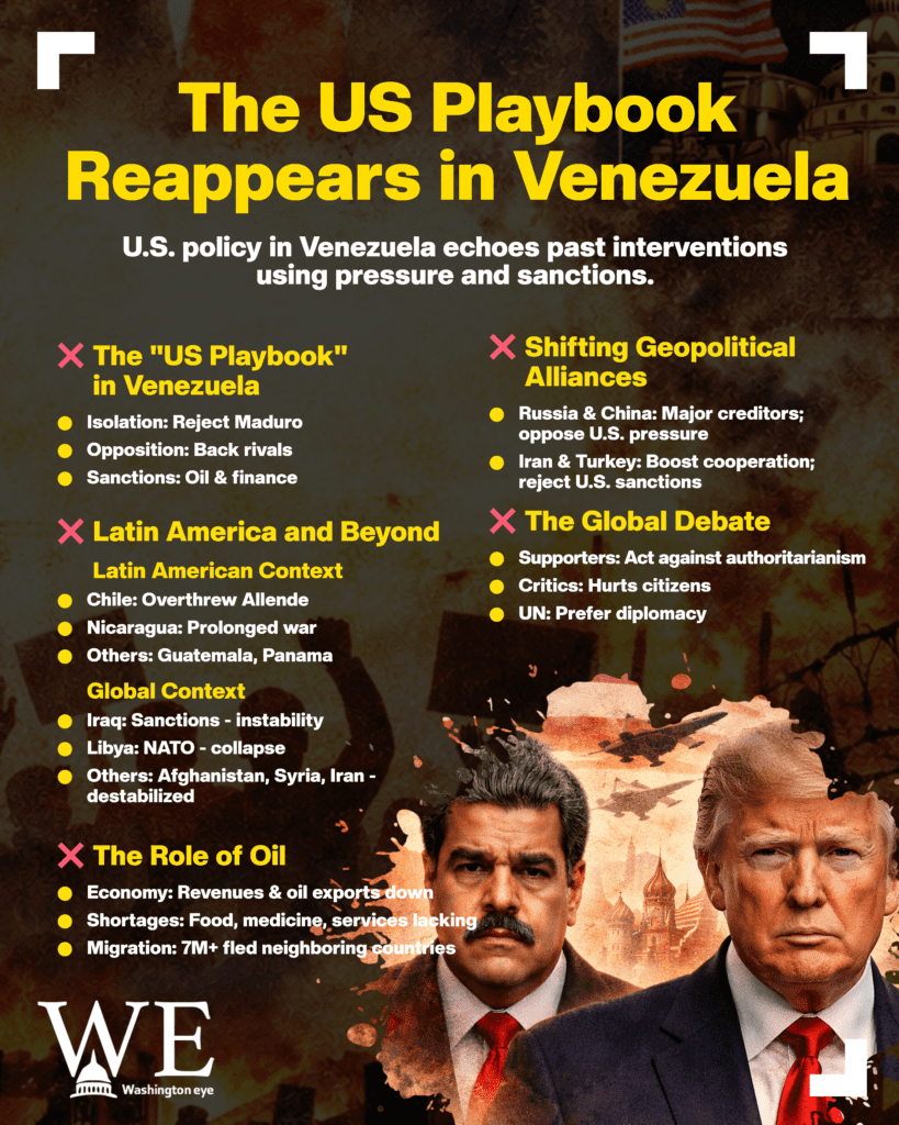 Venezuela’s deepening political and economic crisis has revived a long-running global debate over United States involvement in foreign governments, as Washington’s pressure campaign against President Nicolás Maduro echoes past interventions across Latin America, the Middle East, and beyond. Through sanctions, diplomatic isolation, and support for opposition forces, the US has once again adopted tools that critics say resemble a familiar foreign policy playbook, one that has shaped political outcomes in multiple countries over the last seven decades.