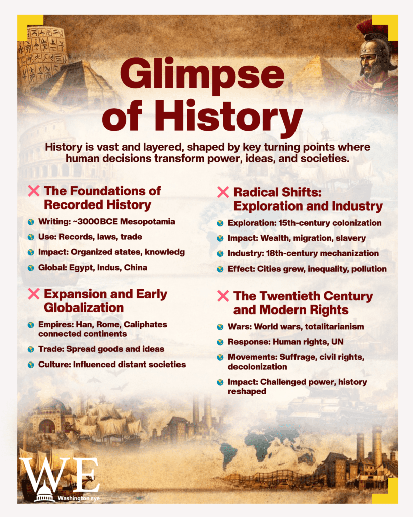 Seen from one perspective, history is a record of power, who held it, who lost it, and who paid the price. Yet it is also a record of learning. Each catastrophe reshaped global consciousness, pushing societies to redefine justice, borders, and human dignity. A glimpse of history, therefore, is not about memorizing dates, but about understanding how past choices echo into the present.