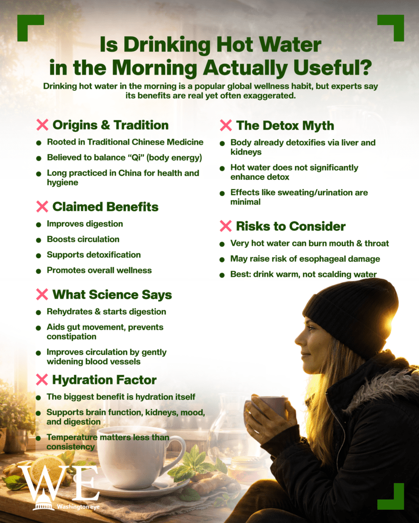 The simple act of drinking hot water first thing in the morning has become a global wellness trend, rooted in ancient traditions and now amplified by modern health culture. From households in China to viral social media routines in Europe and the United States, the habit is widely promoted as a way to improve digestion, detoxify the body, and boost overall health. But medical experts say that while the practice does offer some benefits, many of its claims are often overstated.