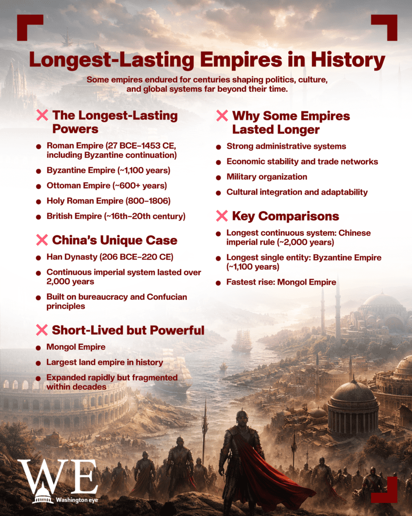 Across the arc of human civilization, empires have risen, expanded, and eventually declined, but a select few have demonstrated extraordinary longevity, shaping politics, culture, and global systems for centuries. From ancient Asia to Europe and the Middle East, historians continue to examine how certain empires managed to endure far longer than others, offering lessons on governance, adaptability, and power.