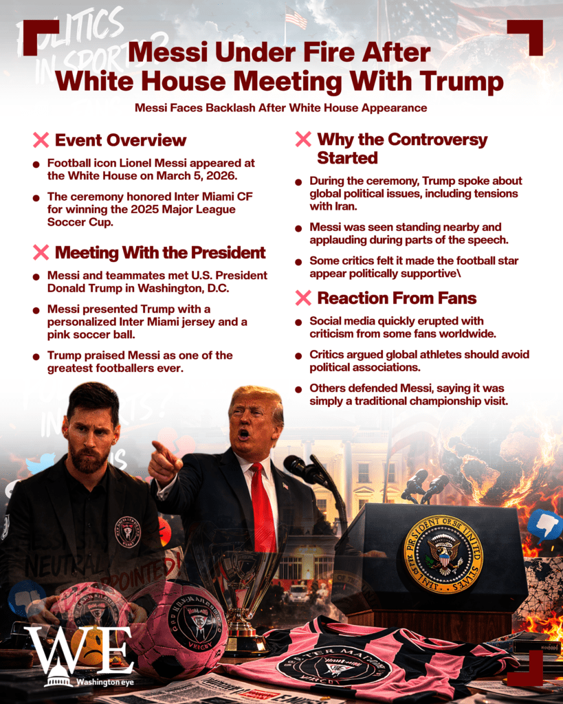 Lionel Messi, one of the most celebrated footballers in the world, has come under criticism after appearing alongside United States President Donald Trump at a White House ceremony in Washington, D.C. The meeting, held on March 5, 2026, was meant to celebrate Inter Miami’s historic 2025 Major League Soccer (MLS) Cup victory, but it quickly sparked political debate and backlash across social media and among some fans worldwide.