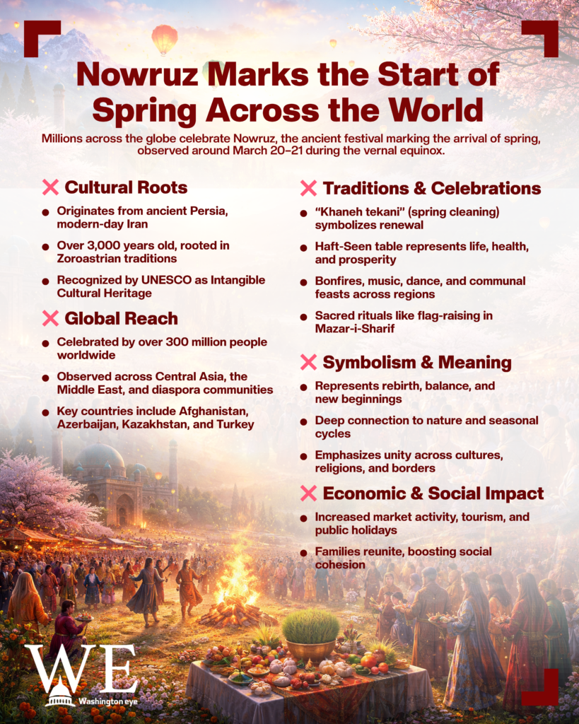 Nowruz, the ancient festival symbolizing renewal and rebirth, is being celebrated across multiple regions of the world as millions welcome the arrival of spring. Observed on or around March 20 or 21, Nowruz coincides with the vernal equinox, the precise moment when day and night are of equal length, marking the transition from winter to spring in the Northern Hemisphere. This year, celebrations began as the sun crossed the celestial equator, bringing with it a sense of hope, balance, and new beginnings.