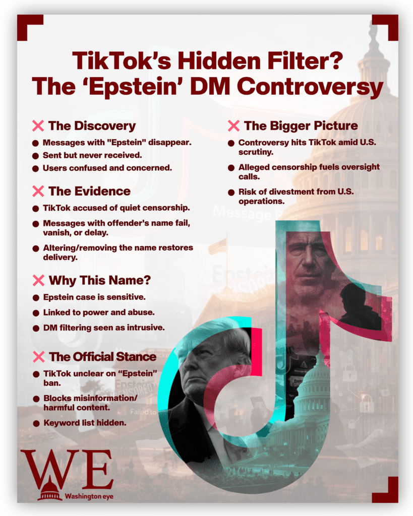 TikTok is facing renewed scrutiny after reports emerged that the platform is censoring the word “Epstein” in direct messages sent by users in the United States, which is raising questions about transparency, political sensitivity, and content moderation practices on one of the world’s most influential social media apps.