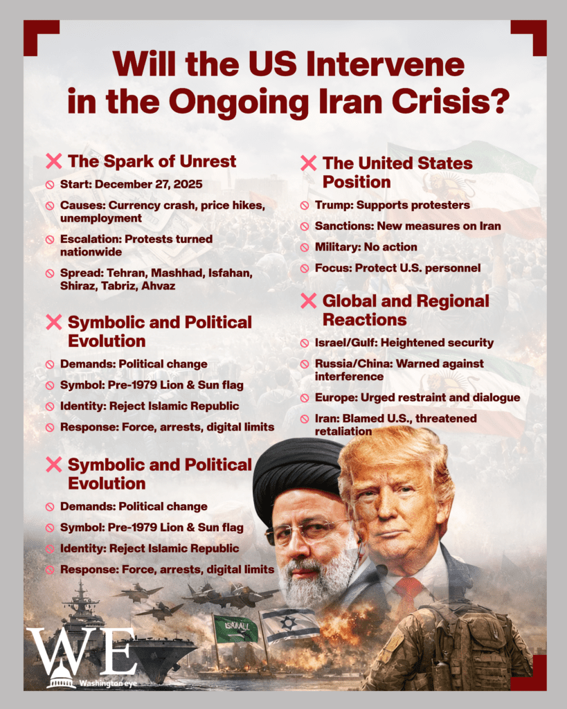 From a critical perspective, the question of US intervention remains complex. Direct military involvement could transform Iran’s internal crisis into a regional war, threatening global oil supplies and civilian lives. At the same time, critics argue that limited responses, sanctions and statements, may embolden Iranian authorities to continue repression. The US faces a familiar dilemma: balancing support for human rights and democratic expression with the risks of escalation and long-term instability.